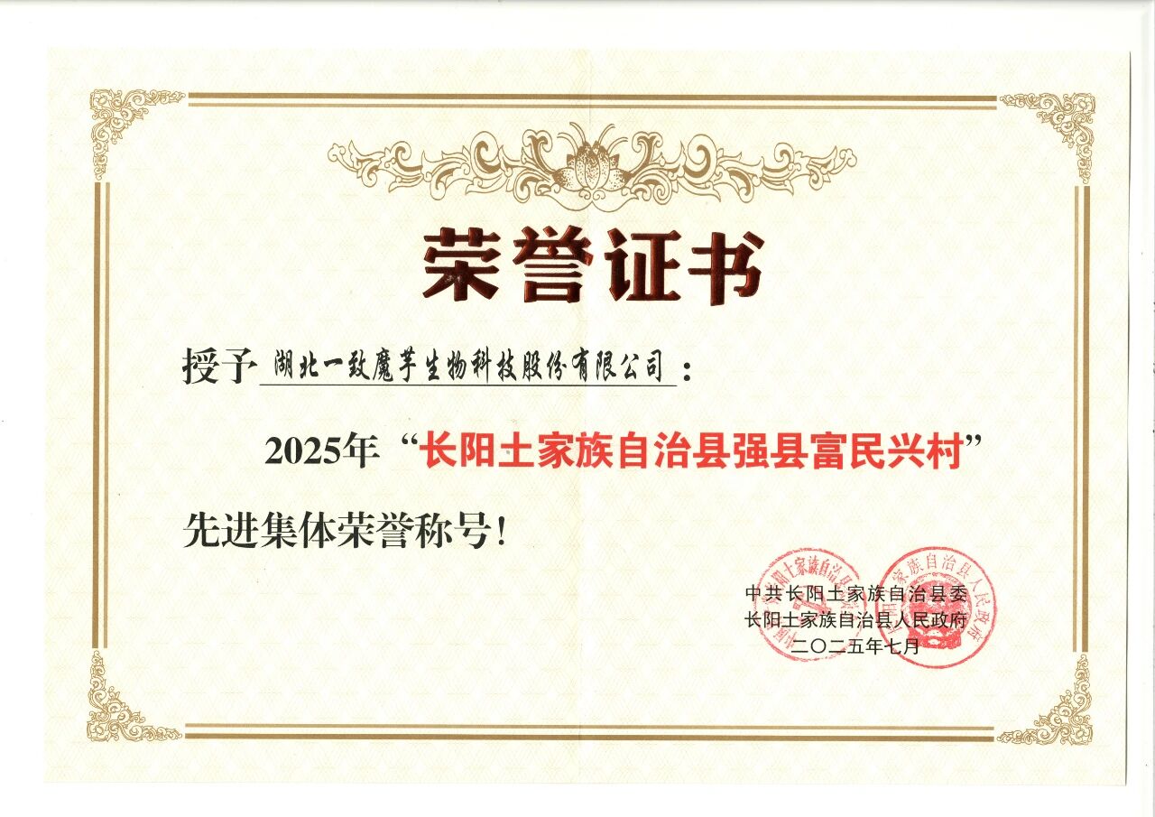 一致魔芋榮獲長陽土家族自治縣“強縣富民興村”先進...